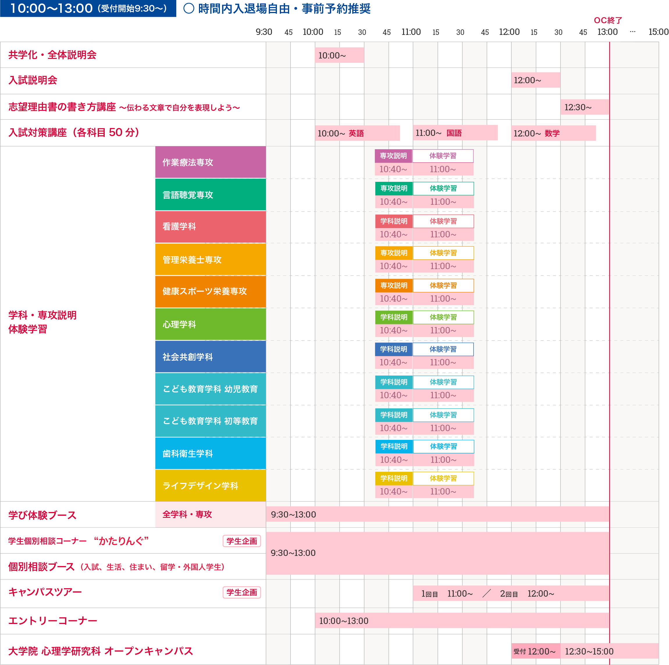 ・個別相談コーナー(授業時間割、履修の手引きなどを提示)● 【実験・実習室ツアー】