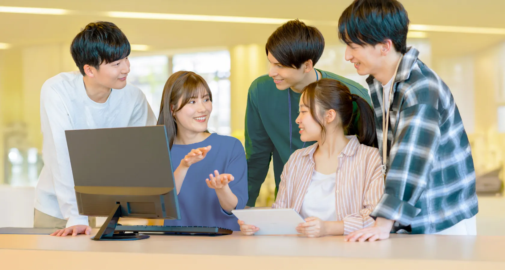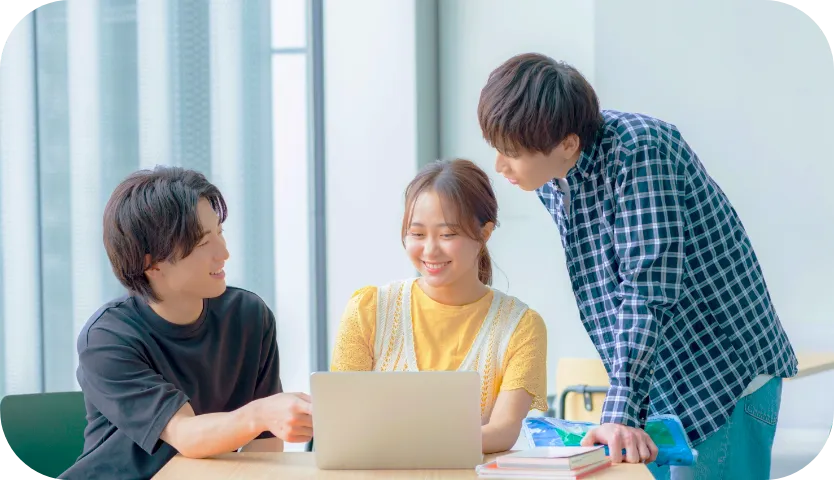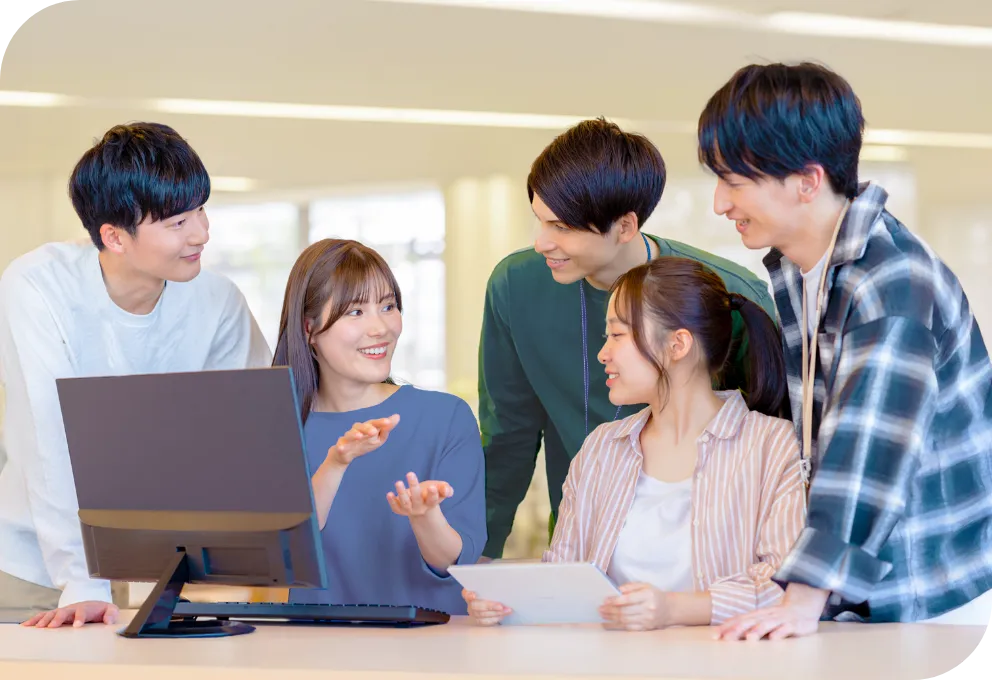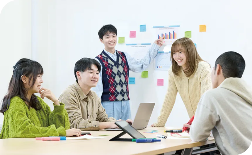 社会共創学科では、「共創」を合言葉に多様なアイデアや強みを掛け合わせ、「社会全体を見渡す広い視野」と「変化に対応する柔軟な思考」を実践重視で学びます。